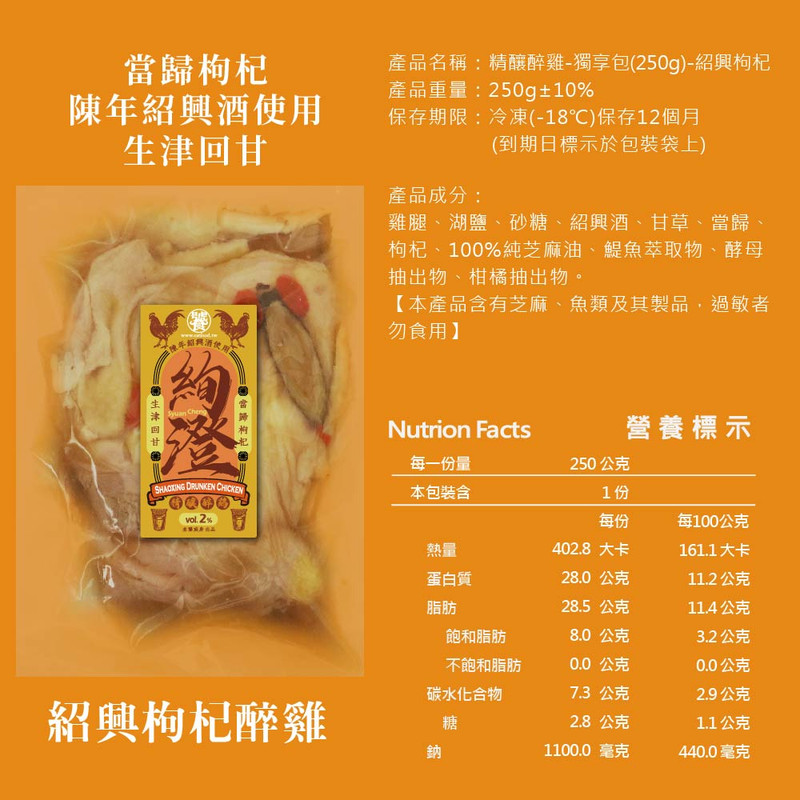 精釀醉雞【獨享包250克】-紹興枸杞